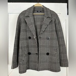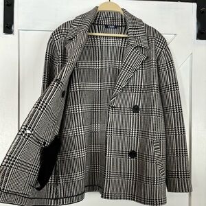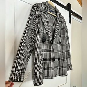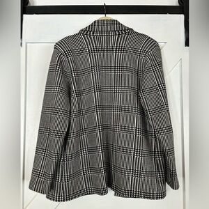 Super soft and comfortable blazer, looks very chic but feels comforting like a sweater! Hits at finger tip length.