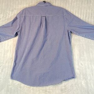 Chaps Button Down Blue Gingham Long Sleeve Shirt Contrast Collar. Size and material tag has been removed. Listed as Medium based on measurements.