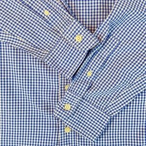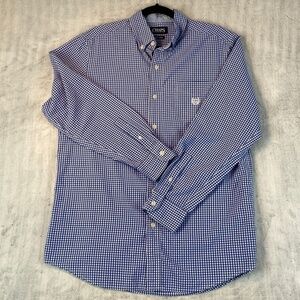 Chaps Button Down Blue Gingham Long Sleeve Shirt with Contrast Collar