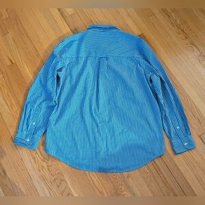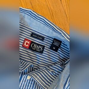 This Chaps shirt showcases a timeless button-down style in a refreshing blue and white palette. Crafted from lightweight cotton, it ensures comfort and a relaxed fit for everyday casual wear. The subtle weave pattern adds a touch of elegance to this versatile piece.