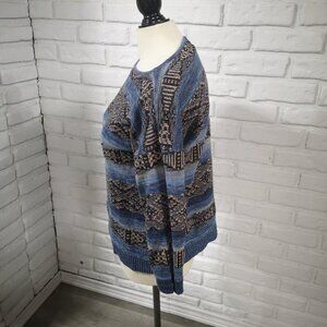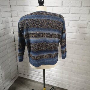 Chaps Denim Ladies Size Large Blue & Tan Linen Blend 3/4 Sleeves Sweater