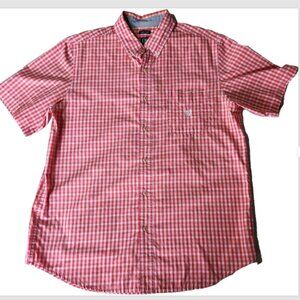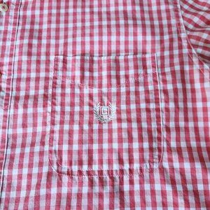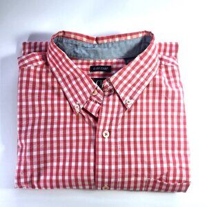 Chaps Easy Care Shirt Men's Large Gingham Plaid Short Sleeve Button Up Red White