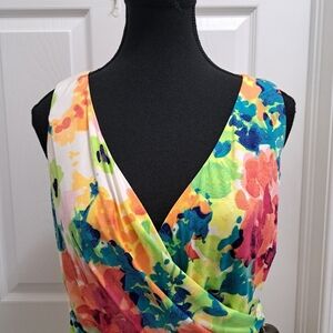 Chaps Floral Dress Faux Wrap Colourful Print Women's Large Sleeveless Dress