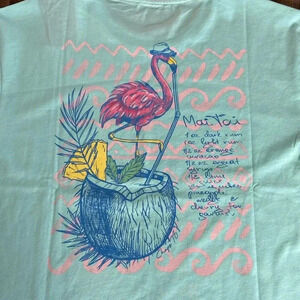 * soft turquoise in color with flamingo 🦩 drinking from a coconut 🥥