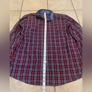 Chaps, Men's, Plaid, Button-Up, Button-down, Shirt, Dress Shirt, Long Sleeve, Red, Navy, L, Large, Casual, Smart Casual, Classic Fit, Easy Care.