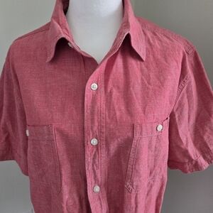 Chaps Mens Coastland Wash Chambray Light Pink Large Button-Up Shirt
