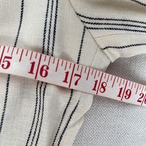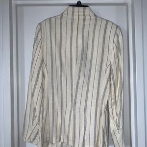 Chaps linen-blend (55% linen & 45% viscose), partially-lined, cream & navy, 2 button, patch pocket, blazer in size 4. True to size. Classic for spring and summer. Nicely shaped. Fabric has stretch. Never worn.