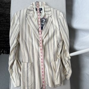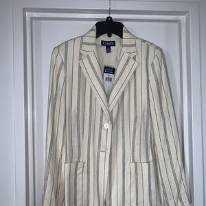 Chaps (NWT) (4) linen-blend, cream & navy, 2-button.