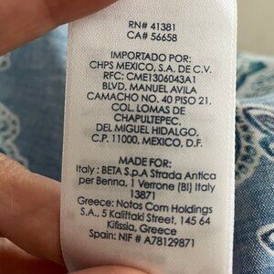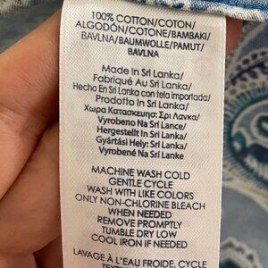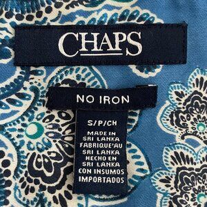 Chaps No Iron 3/4 Slv Button Down 100% Cotton Paisley Shirt Blue White Sz S
