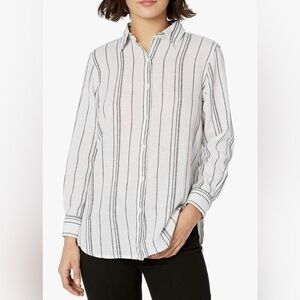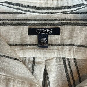 Chaps Petite classic linen and cotton blend button-up blouse vertical stripes