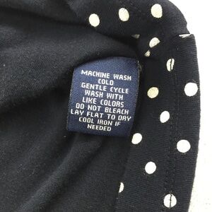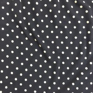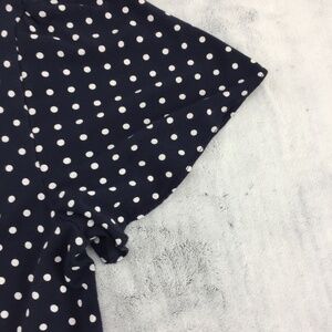 Women's Size Medium. Rayon / Elastane. Navy blue with white polkadots. Pleats at collar. Gathered Sleeve.