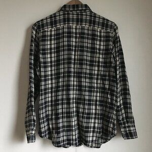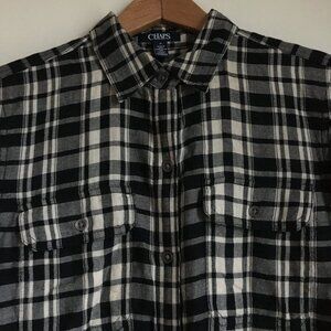 Very good preowned condition, black and white plaid cotton flannel button down shirt by Chaps. Versatile and timeless closet staple. Pairs great with jeans.