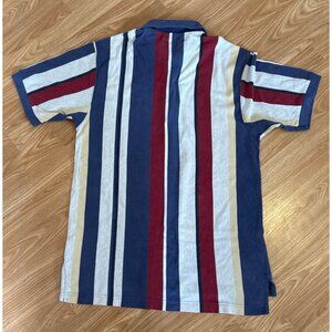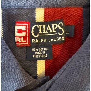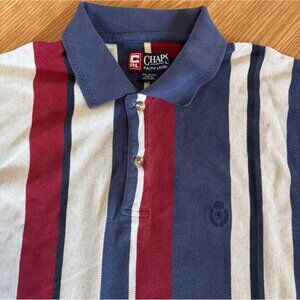 Chaps Ralph Lauren Polo Shirt LG Mens Striped Short Sleeve Blue Red Wht Y2K Vtg