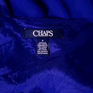 Elegant royal blue sleeveless maxi dress by Chaps. Features a flattering V-neckline with a fitted waist and flowy chiffon-like skirt. Perfect for formal occasions, weddings, or evening events.