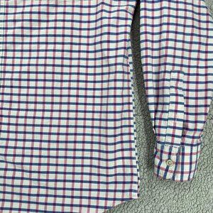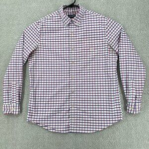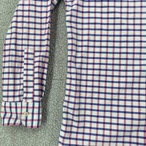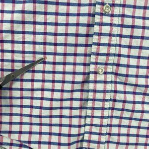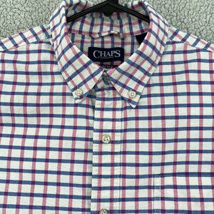 Chaps Shirt Men's Large Dark Pink Blue Plaid Long Sleeve Stretch Oxford Office