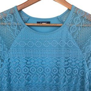 Chaps Teal Lace Pullover Top Short Sleeve 1X Plus Size