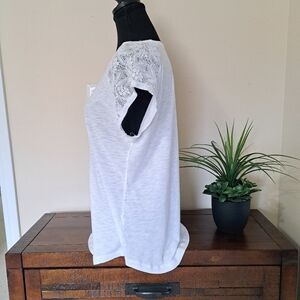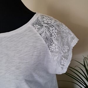 Chaps White Tee Size Medium Lace Detail Shoulder Lightweight