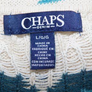 This beautiful Womens Large Chaps Cream Pink Blue Southwestern Aztec Tribal Knit Short Sleeve Sweater top is in Great clean bright condition. Sweater is 57% Cotton, 31% Polyester and 12 Linen is Machine washable -- Air Dry.