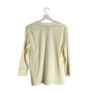 Chaps Yellow Lace Henley Cotton Quarter Sleeve Top Size XL Pastel Comfy