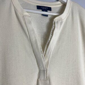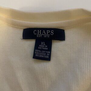 Chaps Yellow Lace Henley Cotton Quarter Sleeve Top Size XL Pastel Comfy Everyday