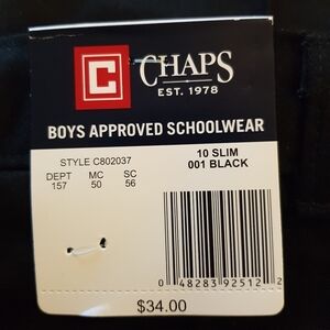 Chaps boys size 10 slim pants black dress pants school approved NEW