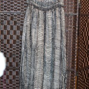This skirt is lined with a Chiffon-like fabric overlay. The waist is elasticized. Comfortable.