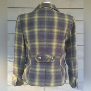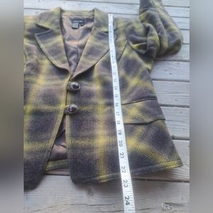 Chic plaid blazer by Chapter One. Features a stylish yellow and gray/green pattern. Ideal for a sophisticated look.