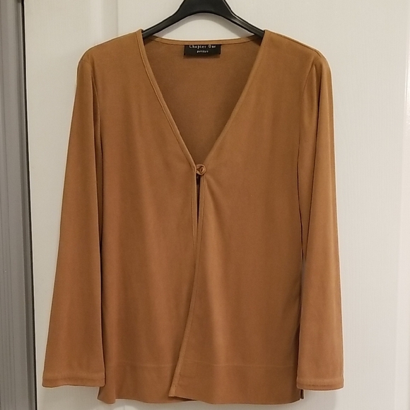Elegant camel jacket with a single button closure. Faux suede, Soft microfober fabric. Perfect for layering. beautiful monocromatic look with Black or brown, head to toe.