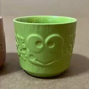Set of 3 Sanrio embossed cups featuring cute characters. Includes blue, pink, and green cups. Perfect for adding a playful touch to your collection.