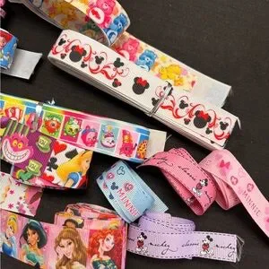 Tons of ribbon featuring Disney princesses and other Disney characters, my little pony, Care Bears, Mickey and Minnie Mouse and much more! Selling as a lot only. Different lengths for all ribbons.