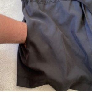 No size or care tag. Would fit a size S to M. Excellent piece of outerwear. Your closet needs this! Tie front closure. Soooo buttery soft. Functional and wonderful: it has pockets! :) Buttons on arms for sleeve rolling detail. Drop sleeve detail.
