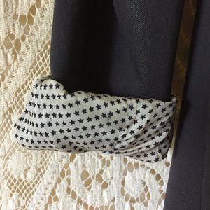 Slim fit elegant to casual one-button blazer. Pptional upturn polka dot lining on cuffs. I'd call this a medium. I'm usually an 8. Good condition.