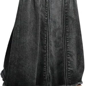 Charcoal Frayed A-Line Maxi Skirt With Pockets