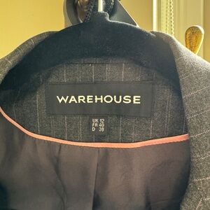Beautiful charcoal blazer with pale pink pinstripe. Structured and feminine details.