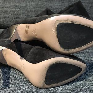 Charcoal suede stretch thigh-highs by Ron White, s39