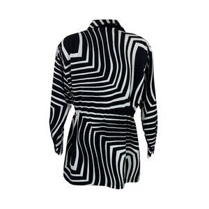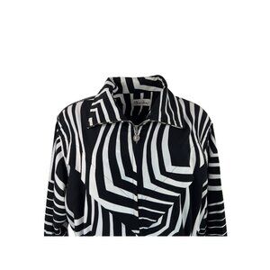 Black and white jacket with elasticated waistline and slight shoulder pads.