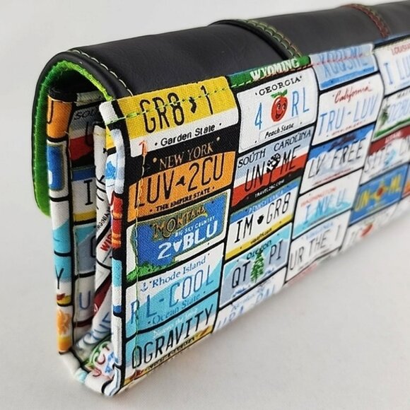 Charity's Stitches & Such Large Textile Wallet States License Plate Black Green
