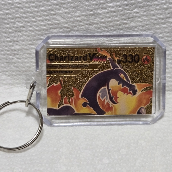 Show off your love for Charizard with this stunning gold keychain. Perfect for fans and collectors alike.