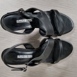 Charles David Carmina Slingback Sandal, Black Leather, Womens Various Sizes