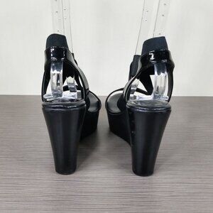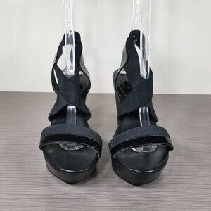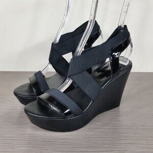Charles David Criss-Cross Strap Wedge Sandals, Black, Womens Size 8 M