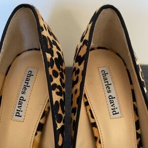 Charles David Leather Bonded Sole Leopard Print Pointed Toe Heels. Sz 10