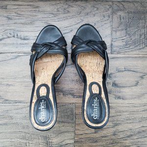 Charles David Platform Open Toe high heel sandals Natural Cork and Black