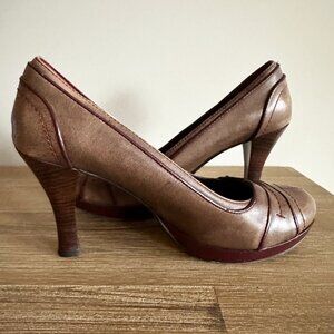 Charles David Round Toe Leather Pumps Taupe Brown Womens Size 8