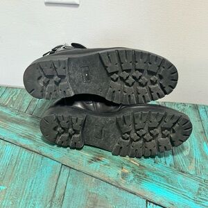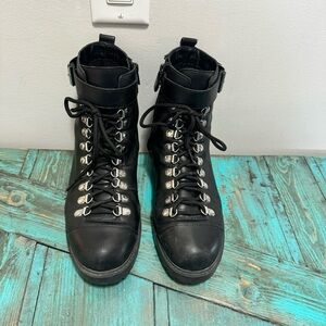 Charles David l Lace Up Zip Biker Boots Leather Size 9.5