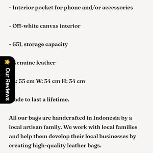 All our bags are handcrafted in Indonesia by a local artisan family. We work with local families and help them develop their local businesses by creating high-quality leather bags." - from website