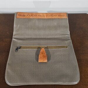 Charles Jordan Purse Beautiful green with brown leather top with name embroidered snap up top no carrying strap bag meant to be held or carried under arm