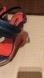 Chic navy straps with bold red insoles. Stylish wooden wedge design. Perfect for any occasion.