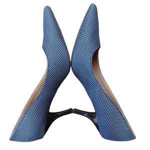 Charles Jourdan Textured Blue & Cream Kitten Heels Size 7.5