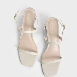 🟩 Charles & Keith Metallic Cone Heel Slingback Sandals - Chalk