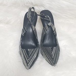 Charles by Charles David Black Geometric Pointed Toe Sling Back Slim High Heel 7